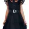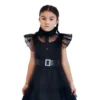- Signature Wednesday Look: Black dress with white collar for a classic gothic vibe.