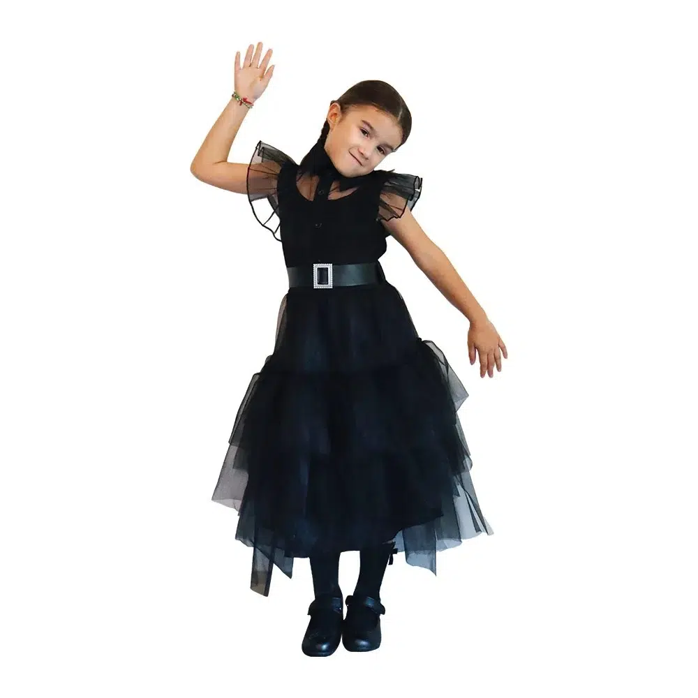 Step into spooky sophistication with the Wednesday Costume – Large from Hala Toy Station, tailored for kids aged 7–8 years. Inspired by the iconic character, this black dress with a crisp white collar captures Wednesday’s signature look in a comfortable, kid-friendly design. Whether you’re browsing Halloween costumes in Dubai or prepping for a party, this outfit delivers eerie flair and festive fun.