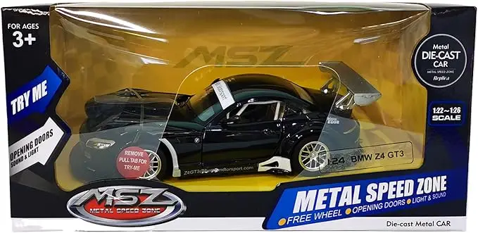 The 1:24 BMW Z4 GT3 offers race-inspired styling and authentic detailing. A great pick for racing enthusiasts and die-cast collectors. • Realistic BMW Z4 GT3 design • 1:24 scale die-cast body • Rolling wheels and detailed interior • Great for shelves or races • Recommended for ages 6+