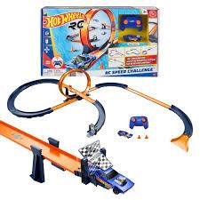 Rev up your excitement with the Hot Wheels R/C Speed Challenge Trackset! This action-packed set brings remote-controlled racing to a whole new level, allowing kids and racing fans to create unique superstructures and test their driving skills. With more than 30 track pieces and a 1:64 scale R/C car, the possibilities for high-speed fun are endless!