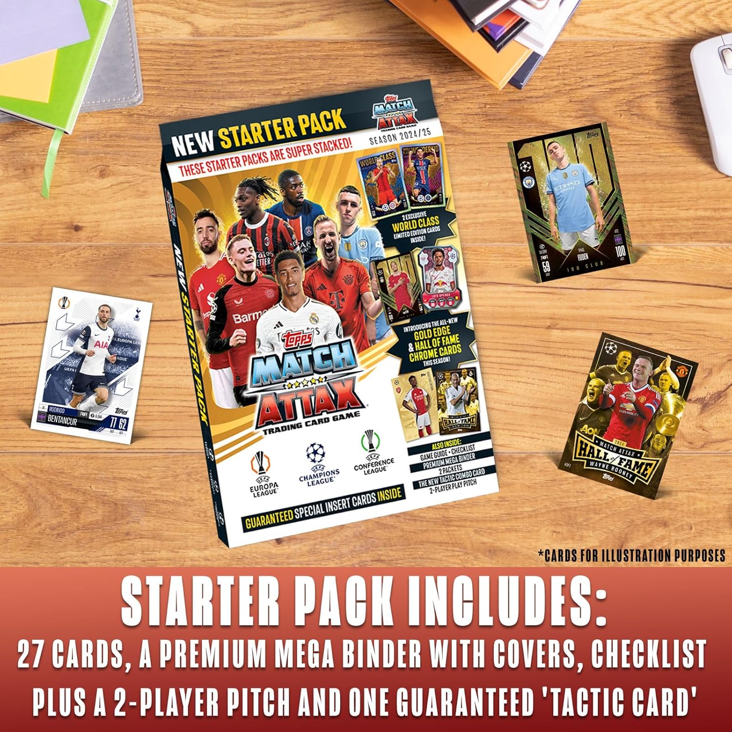 The Starter Pack contains everything you need to kick off your 2024 Match Attax collection! Includes an exclusive Limited Edition card of Harry Kane and a World-Class Wonderkid Limited Edition card of Warren Zaïre-Emery!