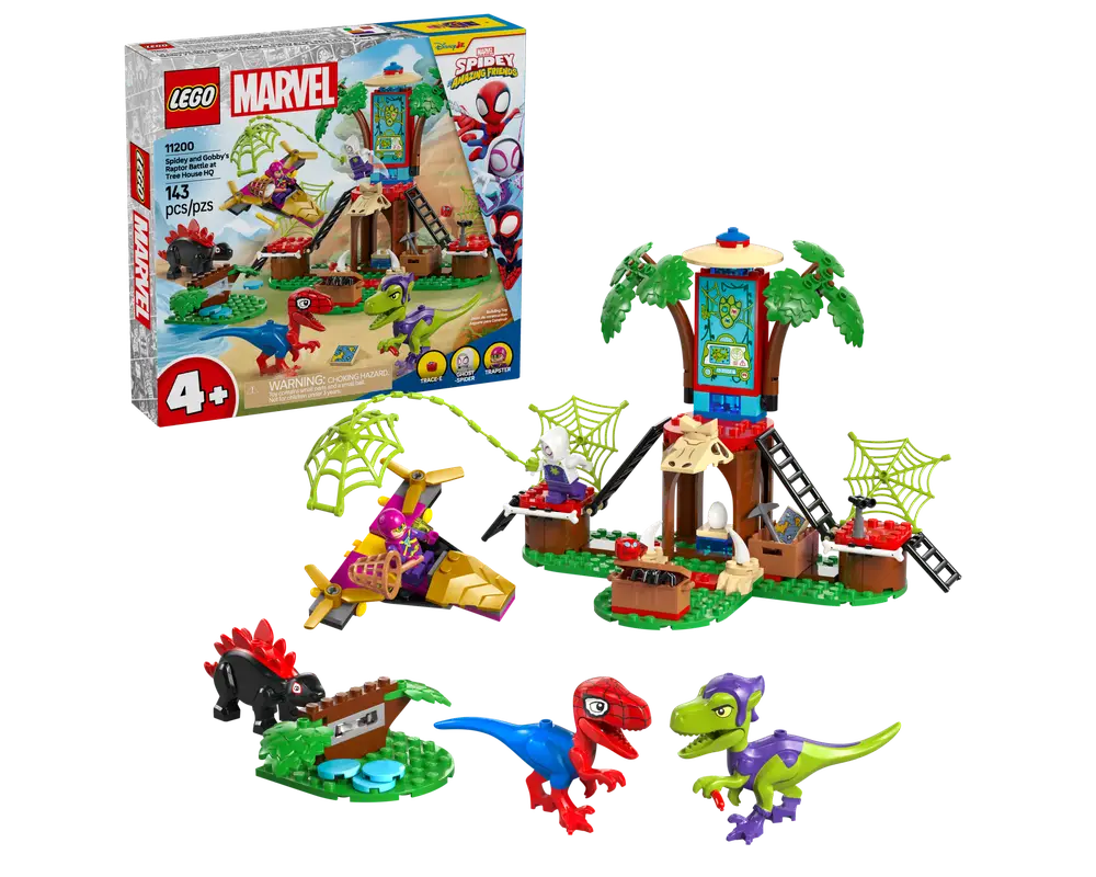 lego Spidey and Gobby’s Raptor Battle at Tree House HQ