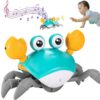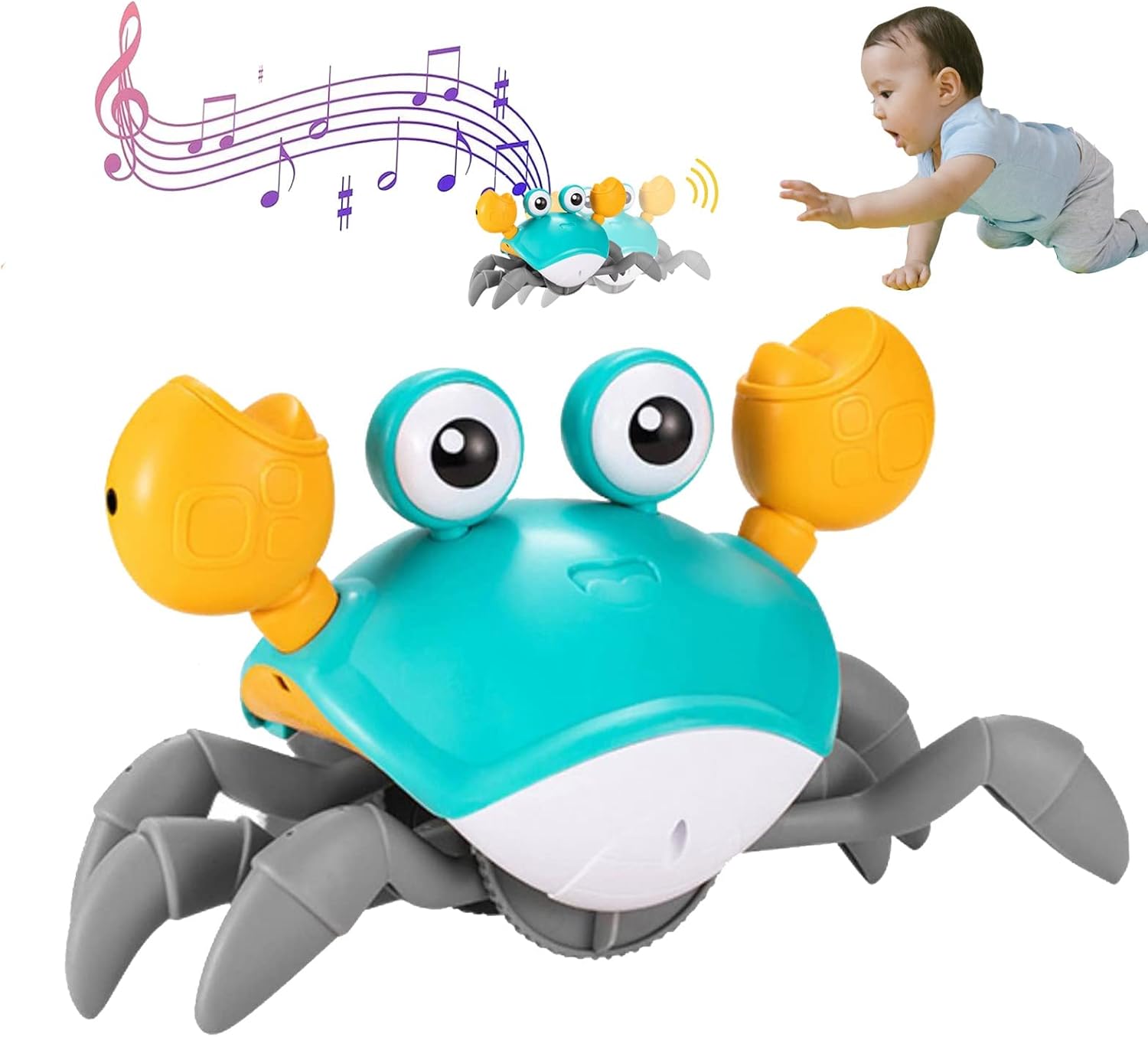 - 【Avoid Obstacles Automatically] The crawling crab baby toy has 2 sensors on the top of crab claws, it will go to the opposite direction when some obstacles coming from the sides of crab. The kid can’t catch the crab easily which makes this toy more fun.