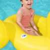 There?s a duck in the pool this summer and it?s making a splash. Quack up the summer with our fabulous Bestway?Funspeakers? Duck Baby Boat. With easy set-up, our exclusive built-in, water-tight sound technology, and long-lasting battery power, your kids will enjoy this playful inflatable summer after summer. This exciting novelty boat is shaped like a duck with realistic sounds at the push of a button. This duck is the life of the party bringing joy and giggles with every quack. Funspeakers? Duck Baby Boats will have parents and kids ?quacking? up under the sun. Parents will love the comfortable, safe seating and kids will enjoy the fun shape and cute sounds. Release your inner child with this uniquely shaped pool toy as you splash, float and discover the wonders of summer.