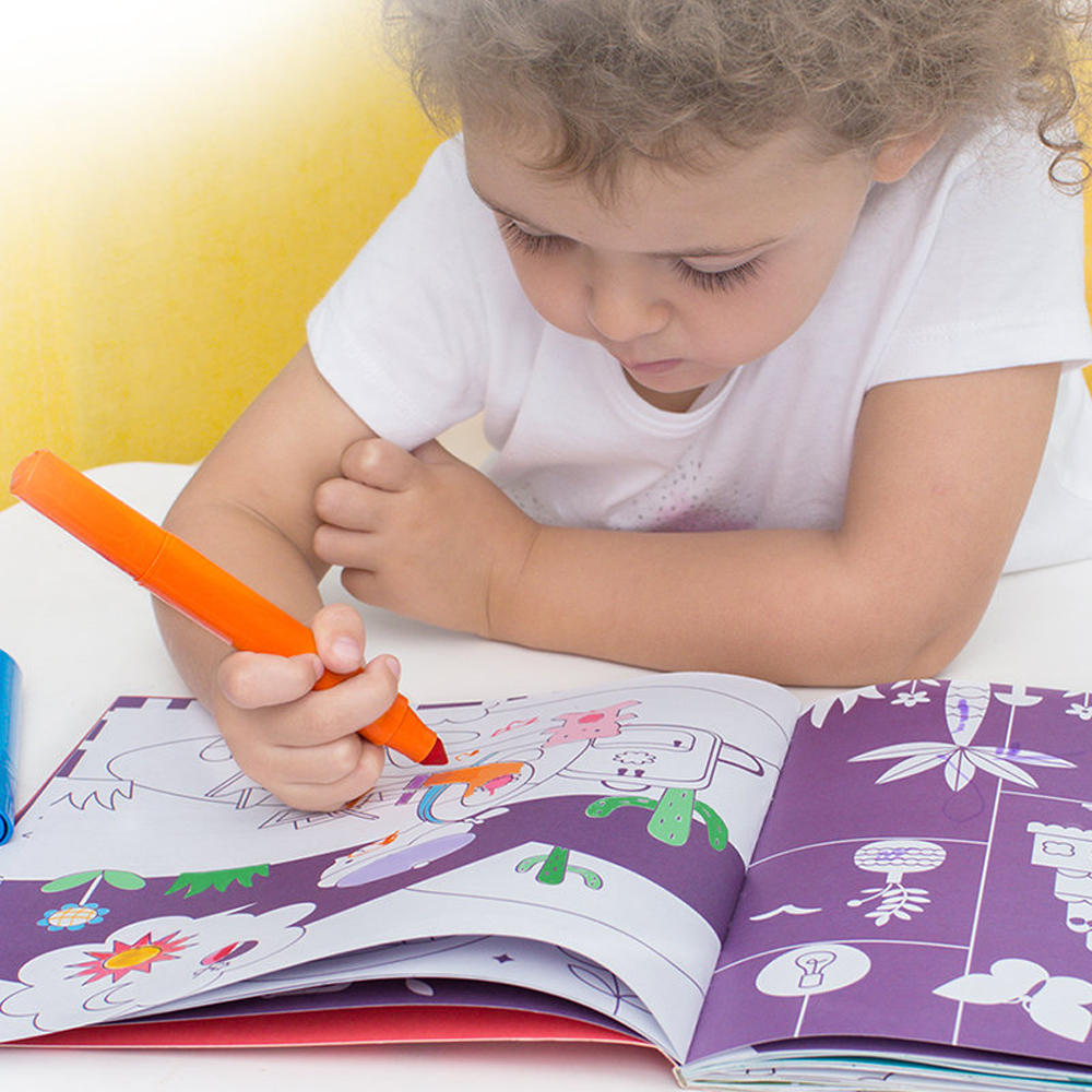 Every child is born to be an artist. The Mideer Coloring Book helps to develop children?s imagination and creativity from random lines and diverse colors to play on the book. Vivid patterns are made up of triangles. Circles, squares, lines, and other graphics. Ingenious coloring cultivates children?s color perception. Pictures in the coloring book can be used for coloring and telling stories, improving children?s language aptitude. Your child can use colored pencils, markers, crayons, and also chalk to color on the paper. The book is printed with food-grade soybean oil ink that is clear and does not fade. Size: 25 * 23 * 0.5 cm
